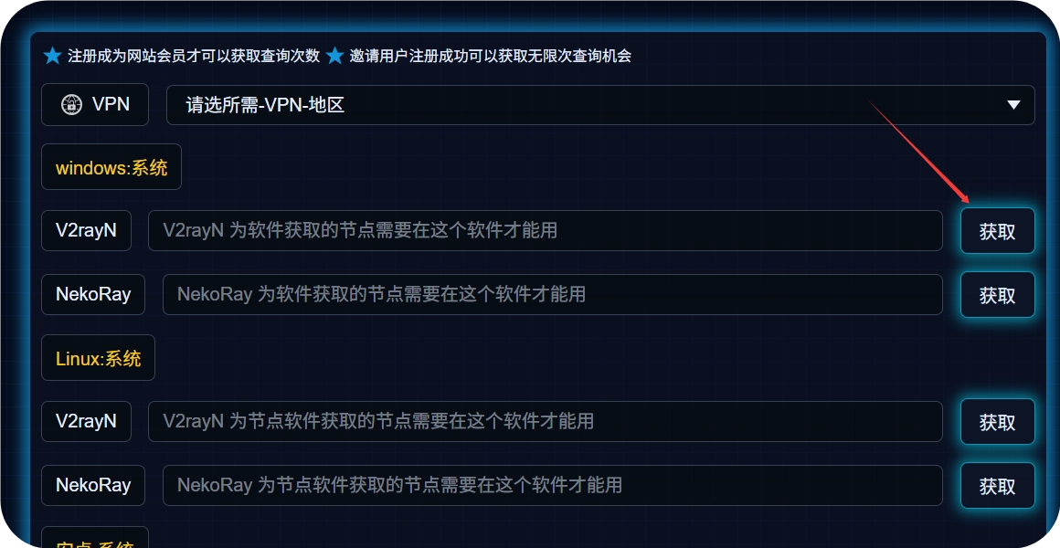 选择一个节点,点击右下角圆圈按钮即可链接该节点进行科学上网。