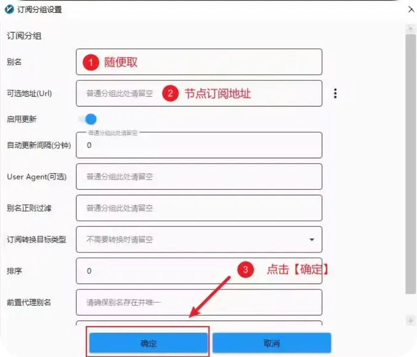 在文本框内粘贴第一步复制的订阅链接,然后提交