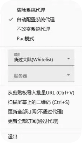点击右键,选择“自动配置系统代理”。设置之后就可以开始科学上网了